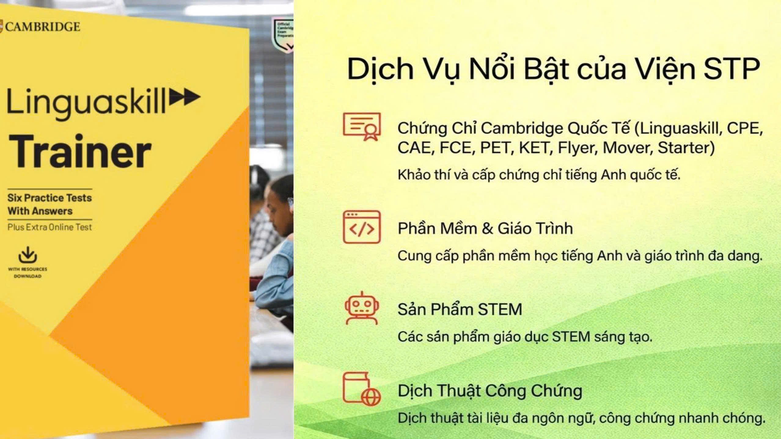 Viện Nghiên cứu Phát triển Giáo dục và Nghề nghiệp STP là đơn vị chuyên tổ chức các chương trình đào tạo, cấp chứng chỉ và phát triển năng lực theo chuẩn quốc tế, đáp ứng nhu cầu học tập, hội nhập và phát triển nghề nghiệp bền vững cho người học trong và ngoài nước.