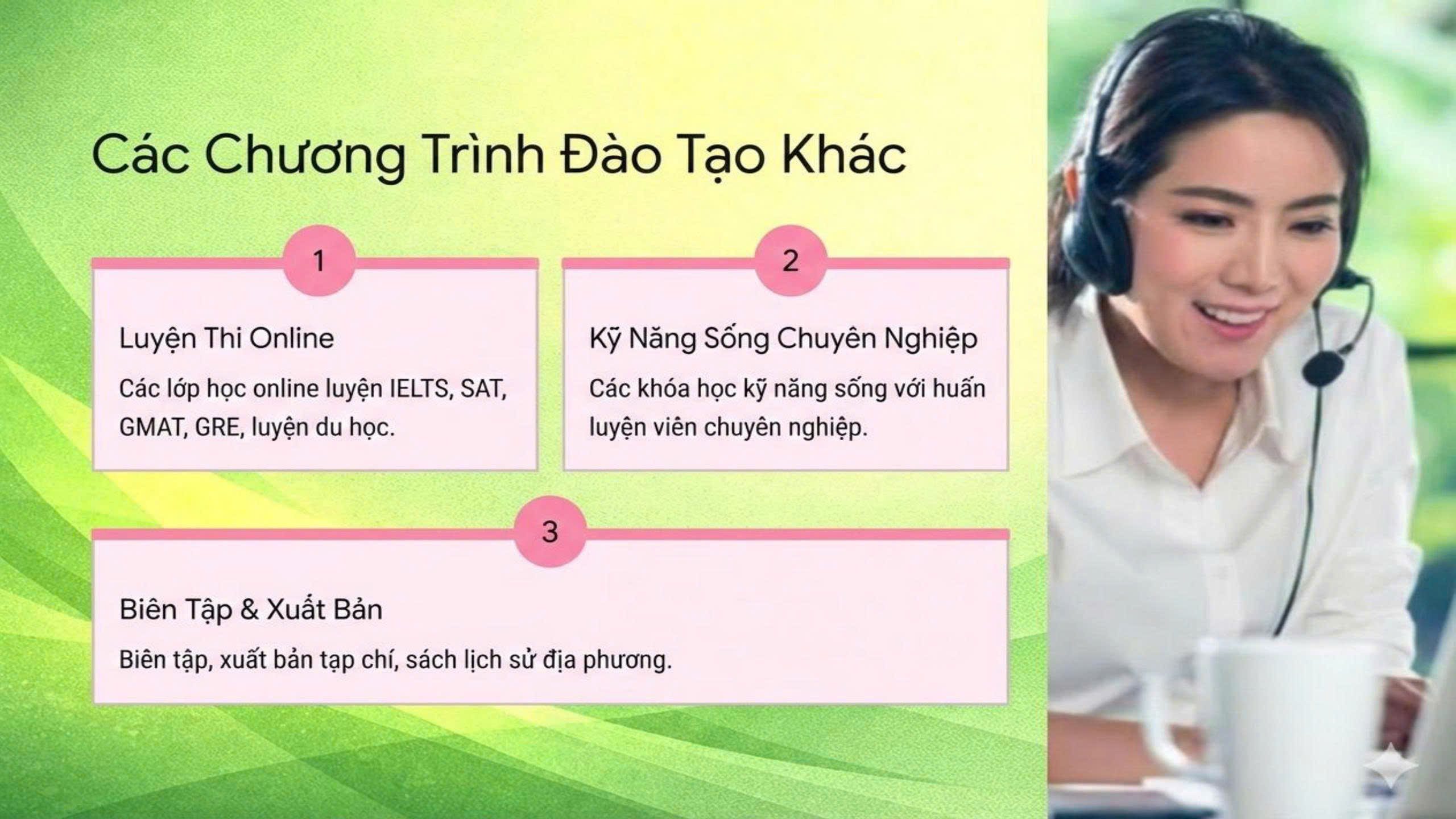 📘 Xuất bản Sách & Giáo trình Biên tập và xuất bản các tài liệu, giáo trình giáo dục chất lượng cao.